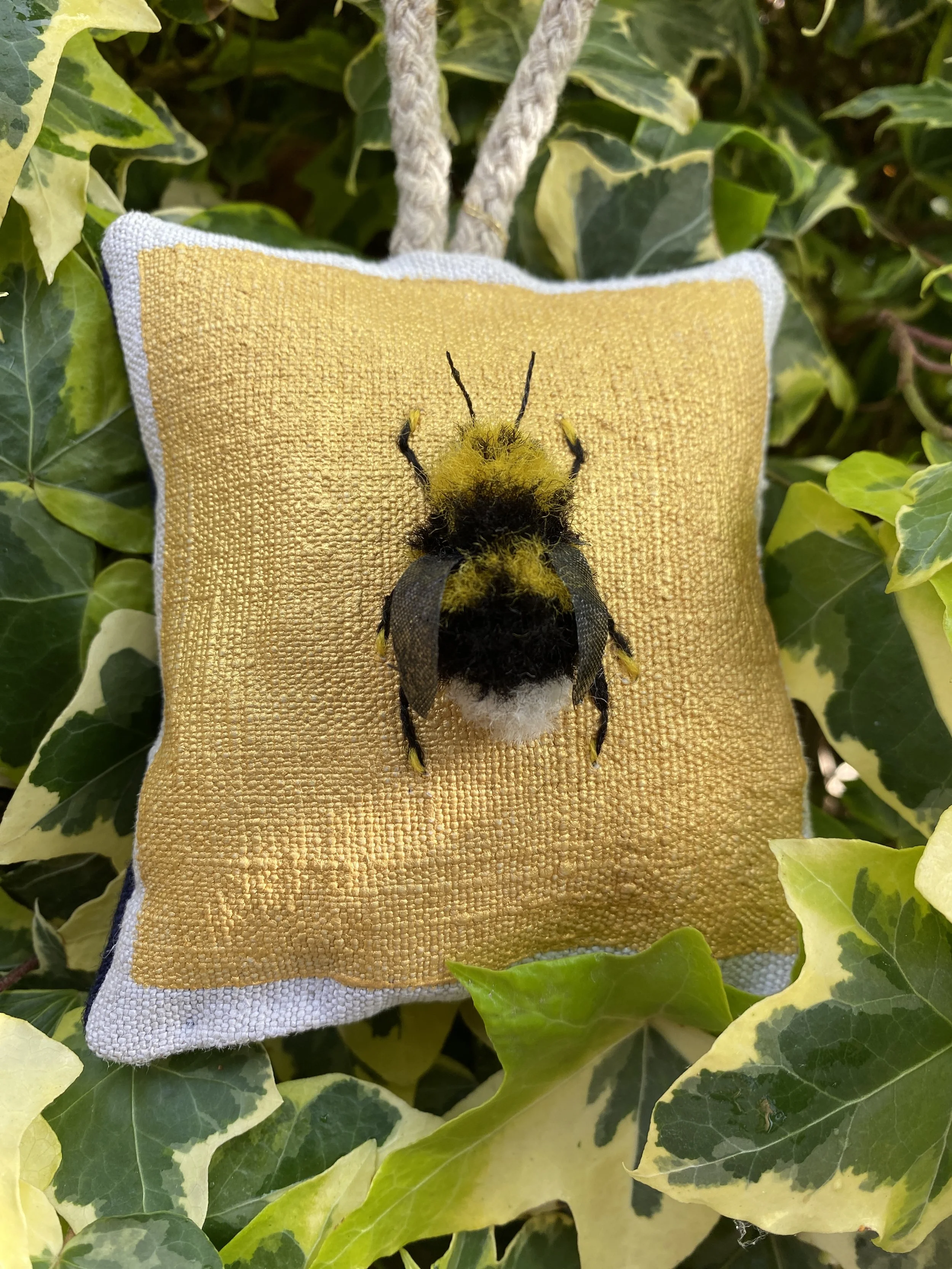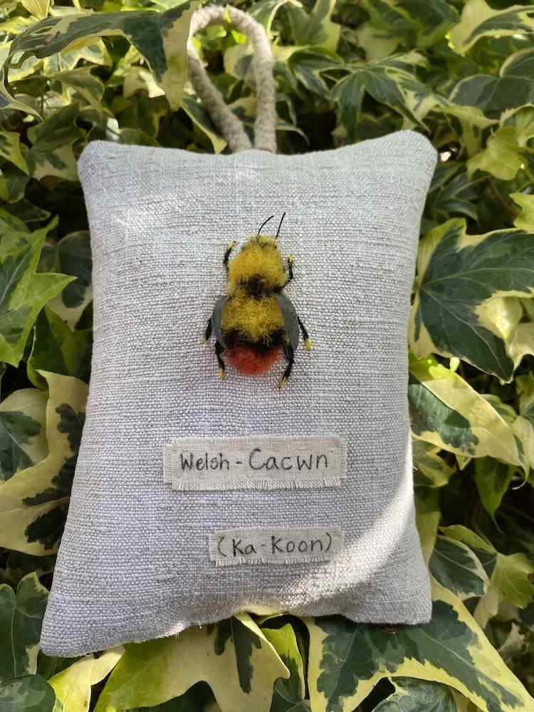 Cacwn, the Welsh for Bumblebee, lavender & camomile scented, with a red wool back.