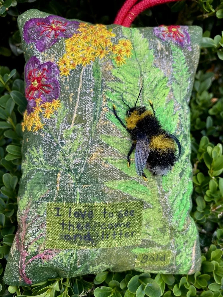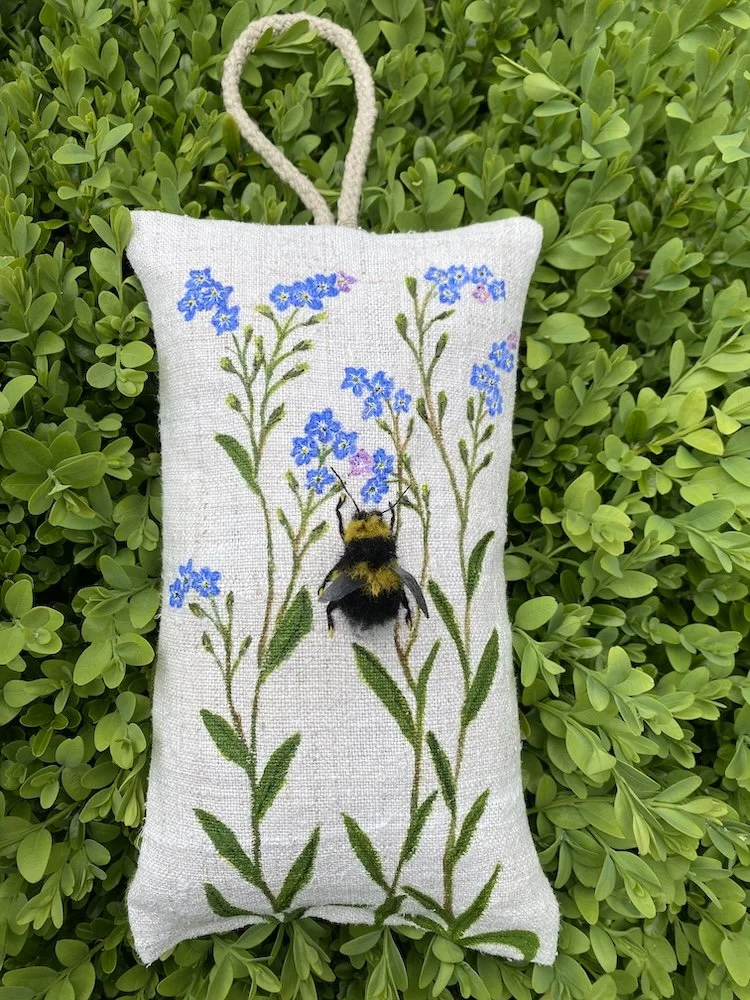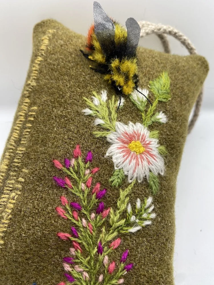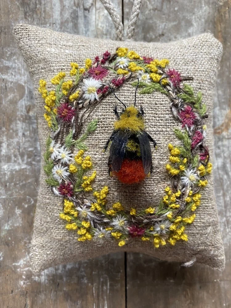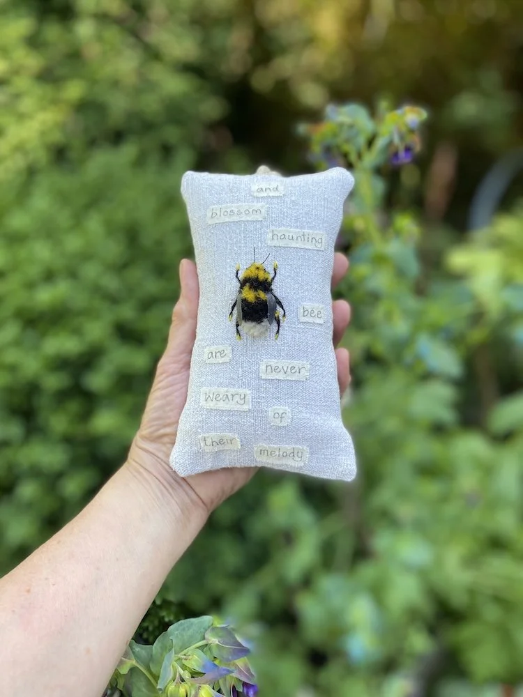 A bit of hand embroidery, a bee and a quote from John Clare resulting in a new sachet design.