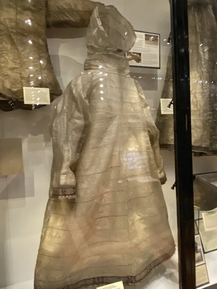 This man’s parka is made from the intestines of a seal . Aleut/Unangan people, Alaska. USA